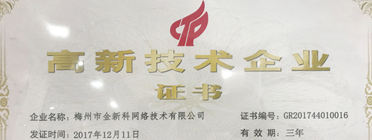 2017年12月11日,國家高新技術(shù)企業(yè)認(rèn)定服務(wù)平臺(tái)對(duì)外公布了“廣東省2017年第二批擬認(rèn)定高新技術(shù)企業(yè)名單”,梅州市金新科網(wǎng)絡(luò)技術(shù)有限公司作為一家互聯(lián)網(wǎng)信息化服務(wù)類高科技產(chǎn)業(yè)的公司,順利通過認(rèn)定,榮登榜單之中!